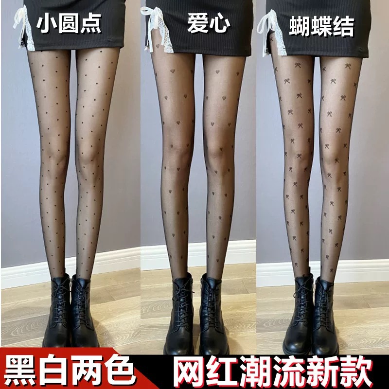 Od波の超薄ストッキングの女性の夏のジャカードの丸い点の愛の蝶結びは純粋に痩せたいです。