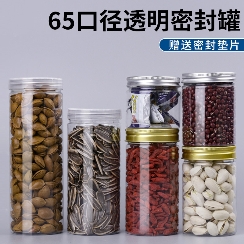 プラスチック缶卸売65口径透明pet包装ボトルラウンドシールシール花茶缶透明プラスチック缶