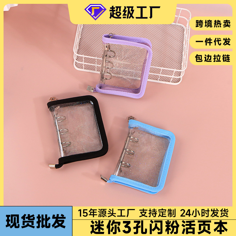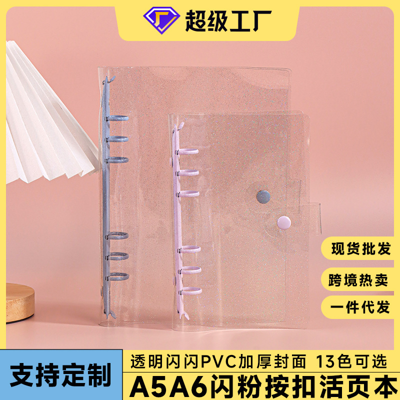 韓国インスタ風pvcフラッシュパウダーバインダーアルバムカバーa5 6日系透明手帳学生6穴日記帳