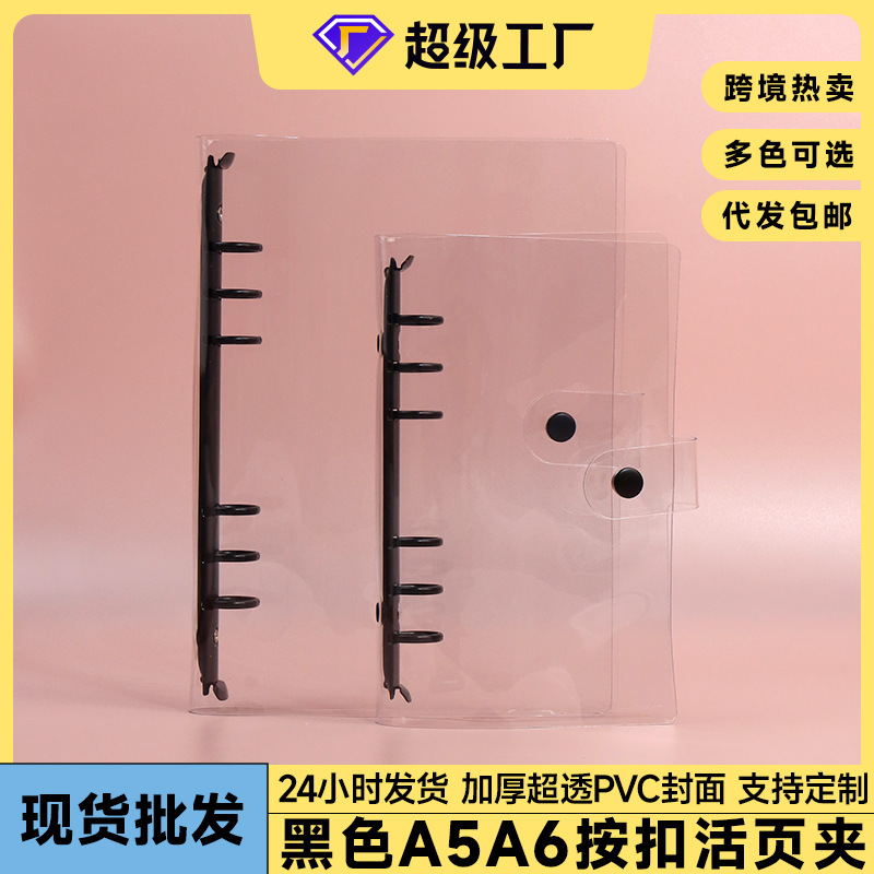 A5ブラック手帳カバーpvcバインダーa6透明ノートシンプルins携帯手帳フラッシュカバー