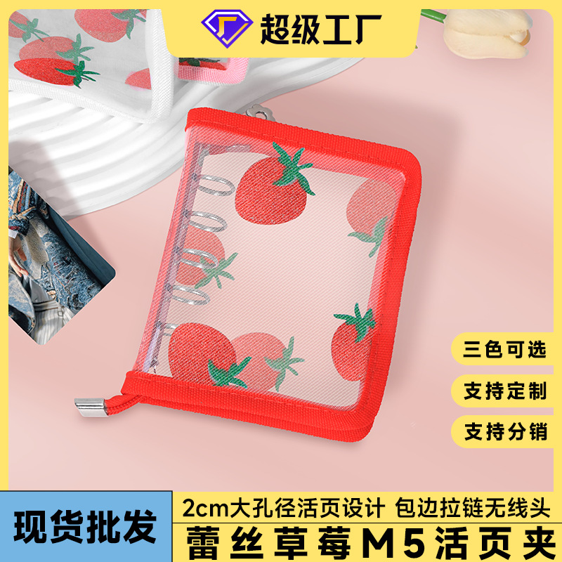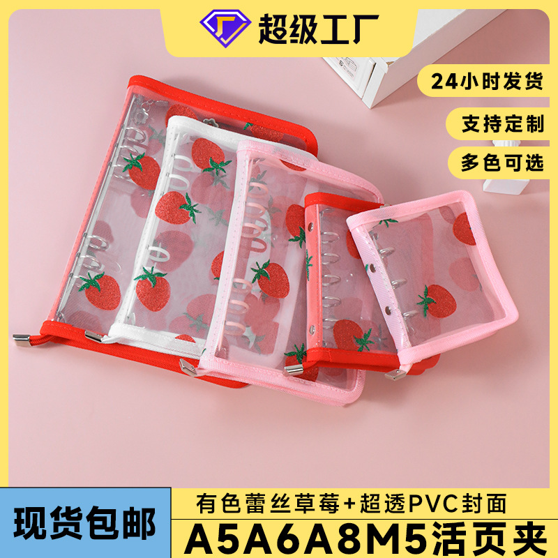 Ins風シンプル透明ファスナー五穴バインダー手帳レースいちご表紙取り外し可能m 5ケース