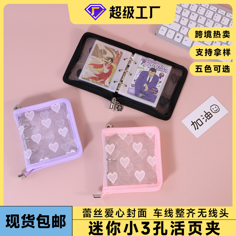 ミニm 5バインダーポケット手帳5穴バインダー収納帳携帯ストラップ付きアルバム小カード収納帳30枚