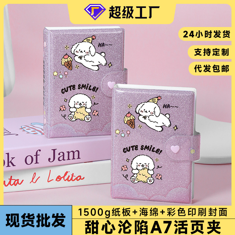 ガーリーでかわいい A7 手元帳、見栄えの良い漫画印刷段ボールルーズリーフノート、6 穴スナップボタンシェル