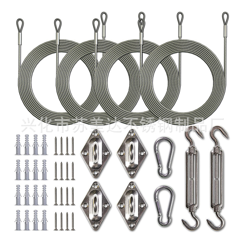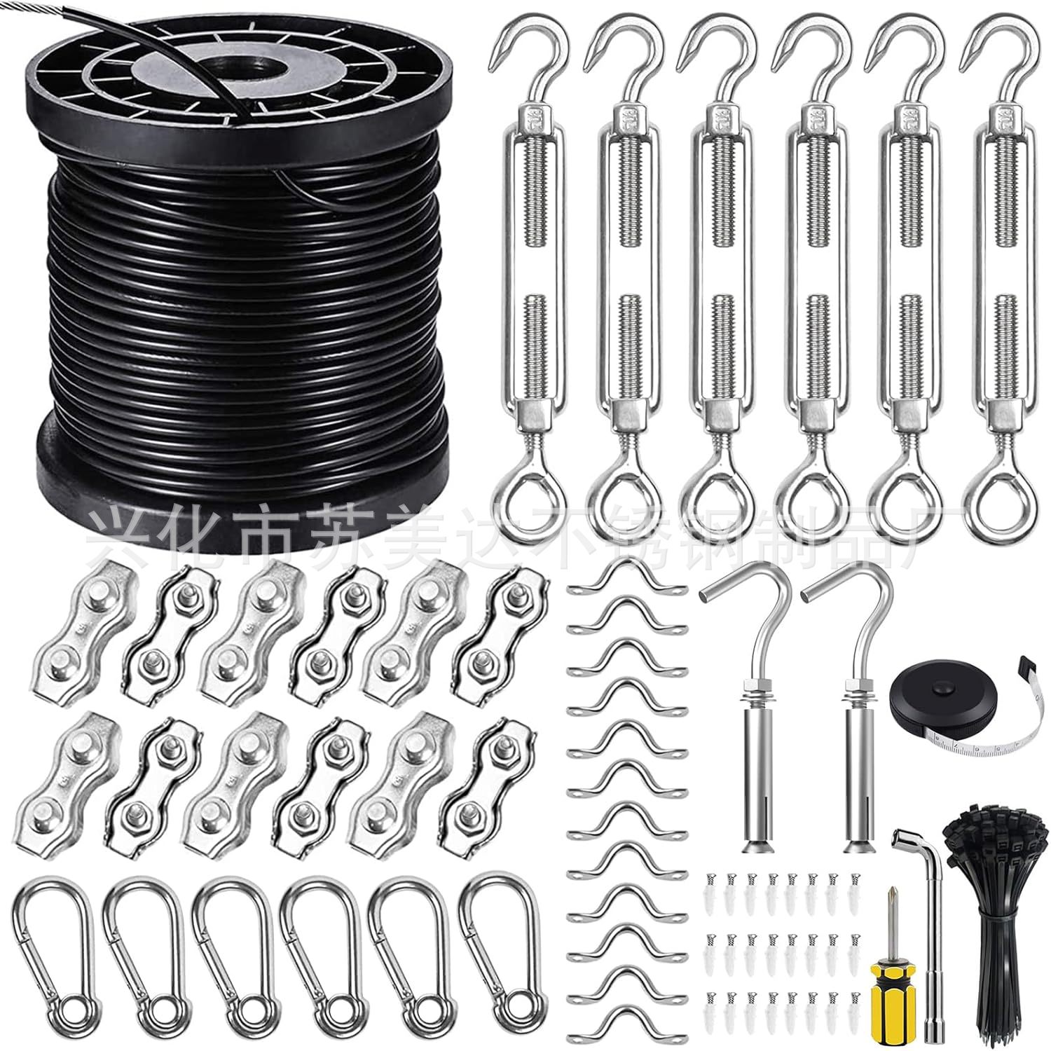 304 ステンレス鋼プラスチックコーティングされたワイヤーロープ屋外ストリングライト黒ナイロンケーブルテンショナーワイヤーアイフックサスペンションキット