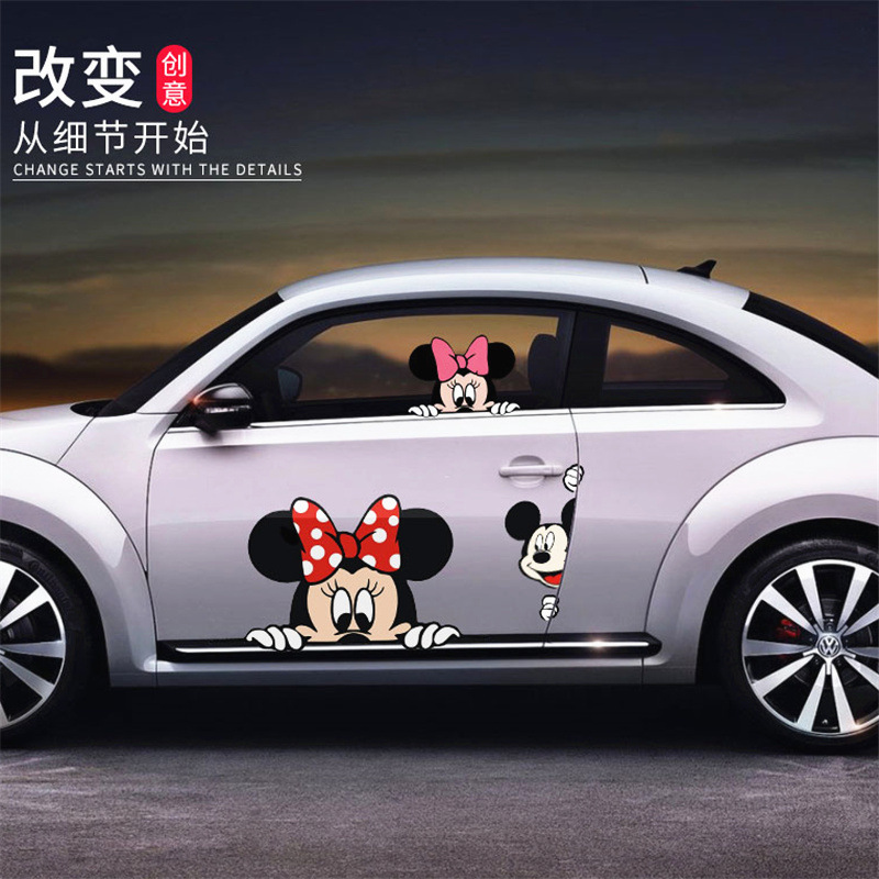 ミッキーマウスの車はかわいい漫画の車体の装飾を貼って花の個性のミッキーのミニーの傷を引いてアイデアのステッカーを遮ります。