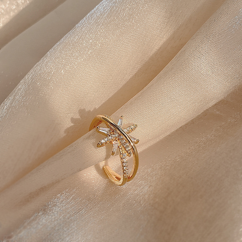 高級感ジルコン八芒星指輪女性の軽豪華なデザイン感があります。