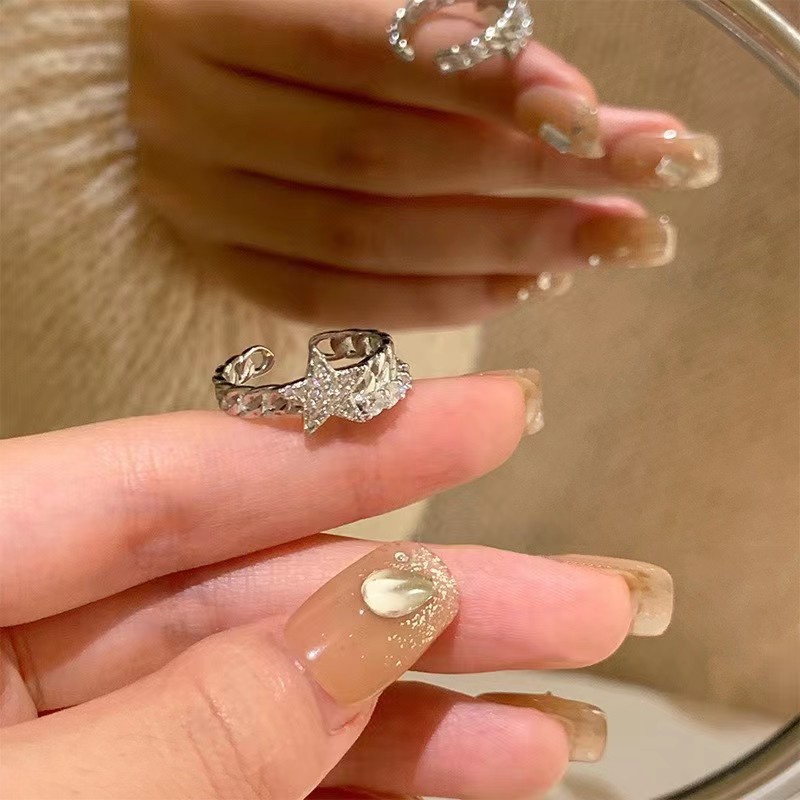 洗練されたシンプルな人差し指にジルコンの素輪食指戒小衆設計ins軽贅沢開口は指輪を調節できる