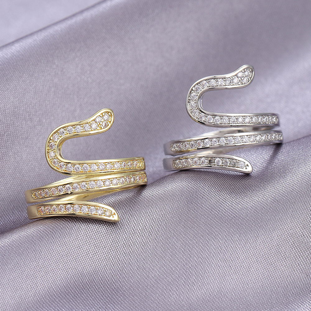 欧米の国境を越えて人気のある銅はジルコンを入れて蛇の指輪を巻いています。