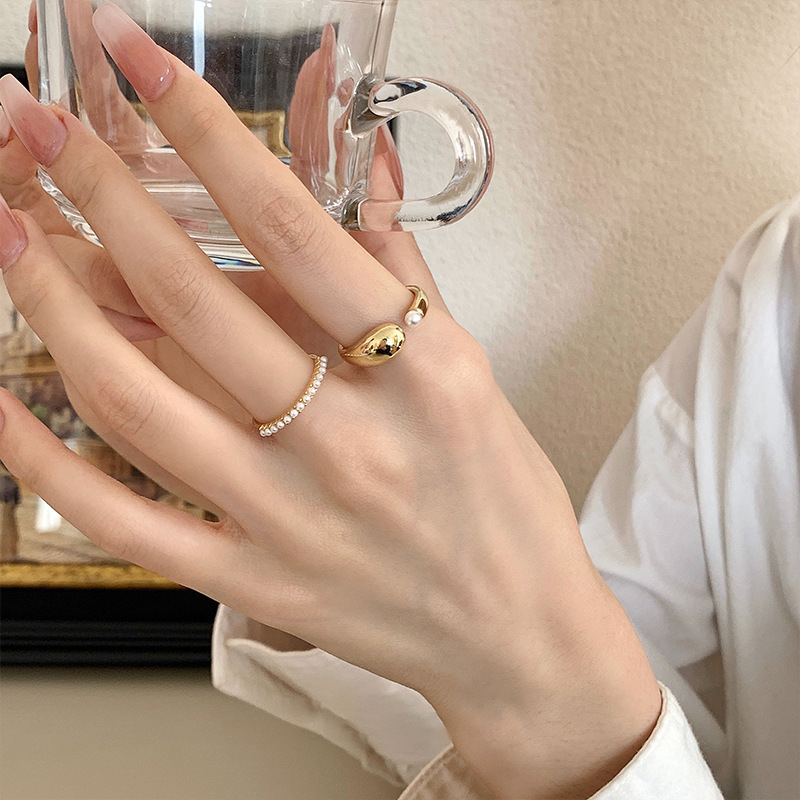 フランスのレトロな真珠の金属の開口の指輪の女性の大衆の設計の個性は簡単で、百合の気質の指輪の戒子を使います。