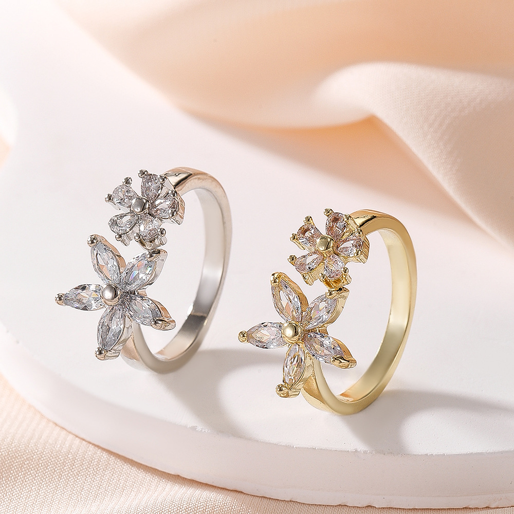 韓系の超仙気質のまぶしい蝶の指輪の女性の軽豪華な大衆の百合の気質の口の指の指輪のネットの赤い指輪