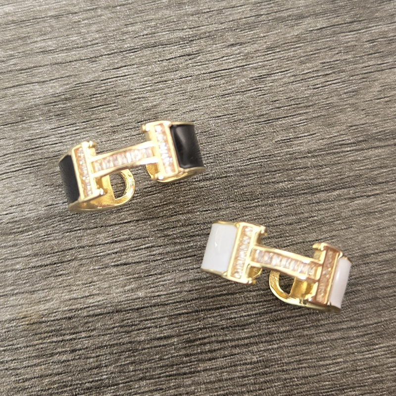 新しいトレンディなH文字フルダイヤモンドエナメルライト高級ファッションオープンリング多用途銅マイクロ象嵌ジルコンオープンリング