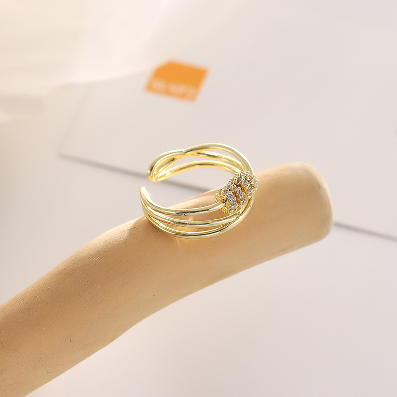 十字欧米ins金メッキ多層クロスボーダー重工小衆ファッション高級感指輪調節可能なアクセサリー女