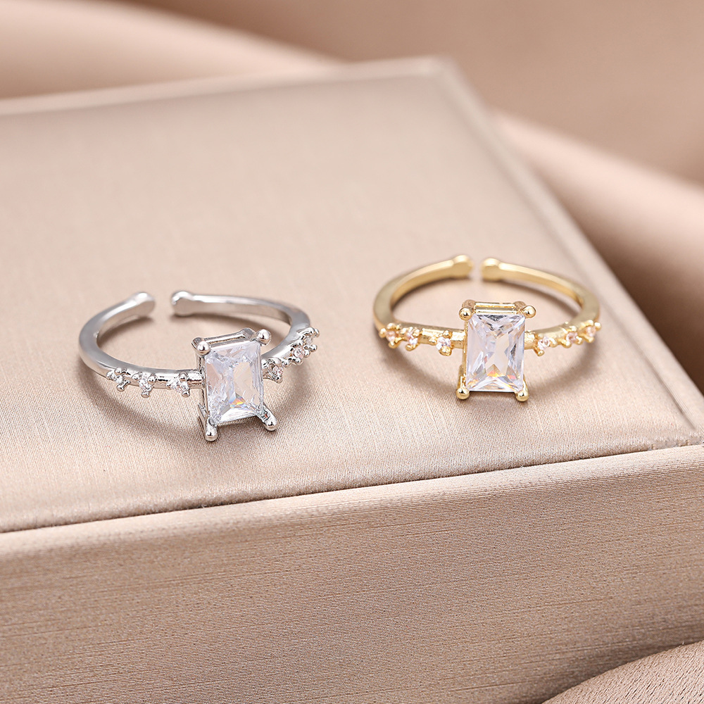 女性用ジルコン幾何学オープンリング、シンプルなデザイン、トレンディな気質、クールなスタイル、パーソナライズされたニッチリング