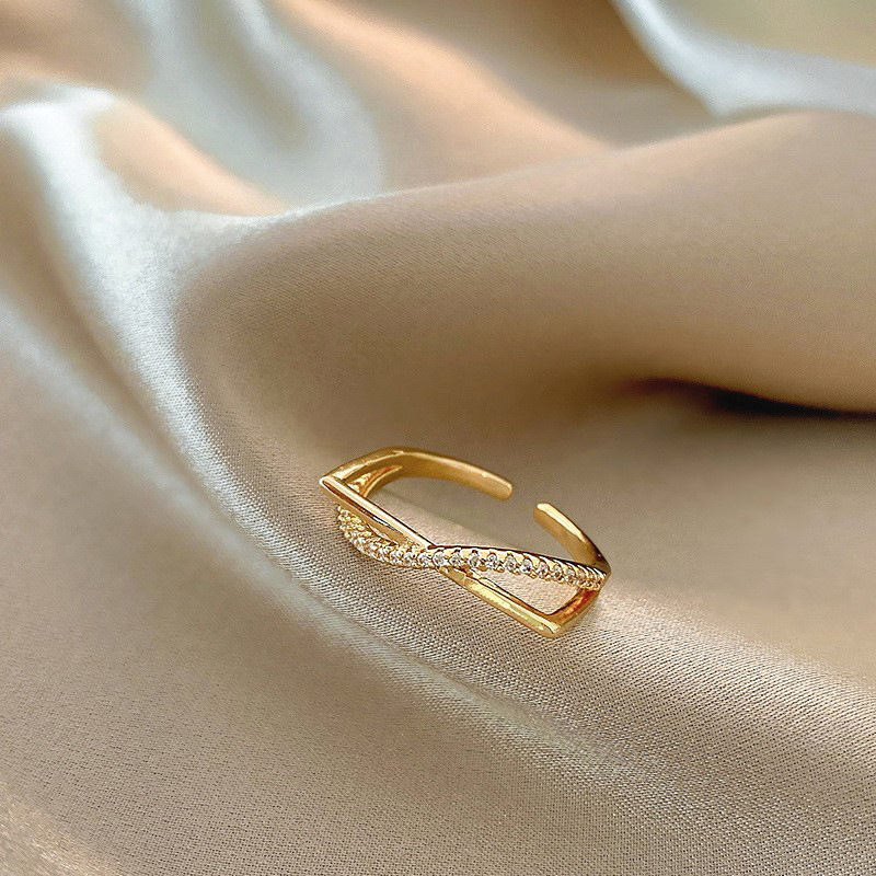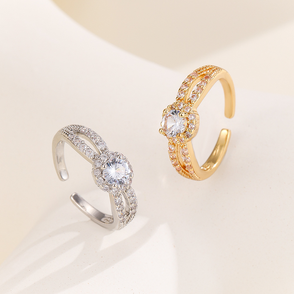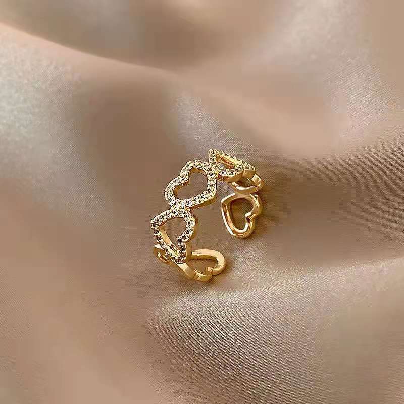 韓国版の透かし彫りの愛の指輪の女性insのファッションの個性はダイヤモンドを入れて口を開けます。