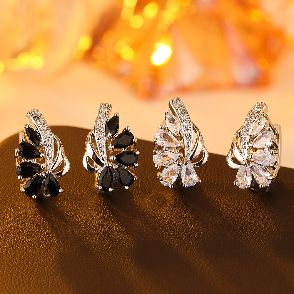 国境を越えた新型黒ジルコニアイヤリング欧米ファッション花卉デザイン耳輪国境を越えた卸売りファッション耳飾り