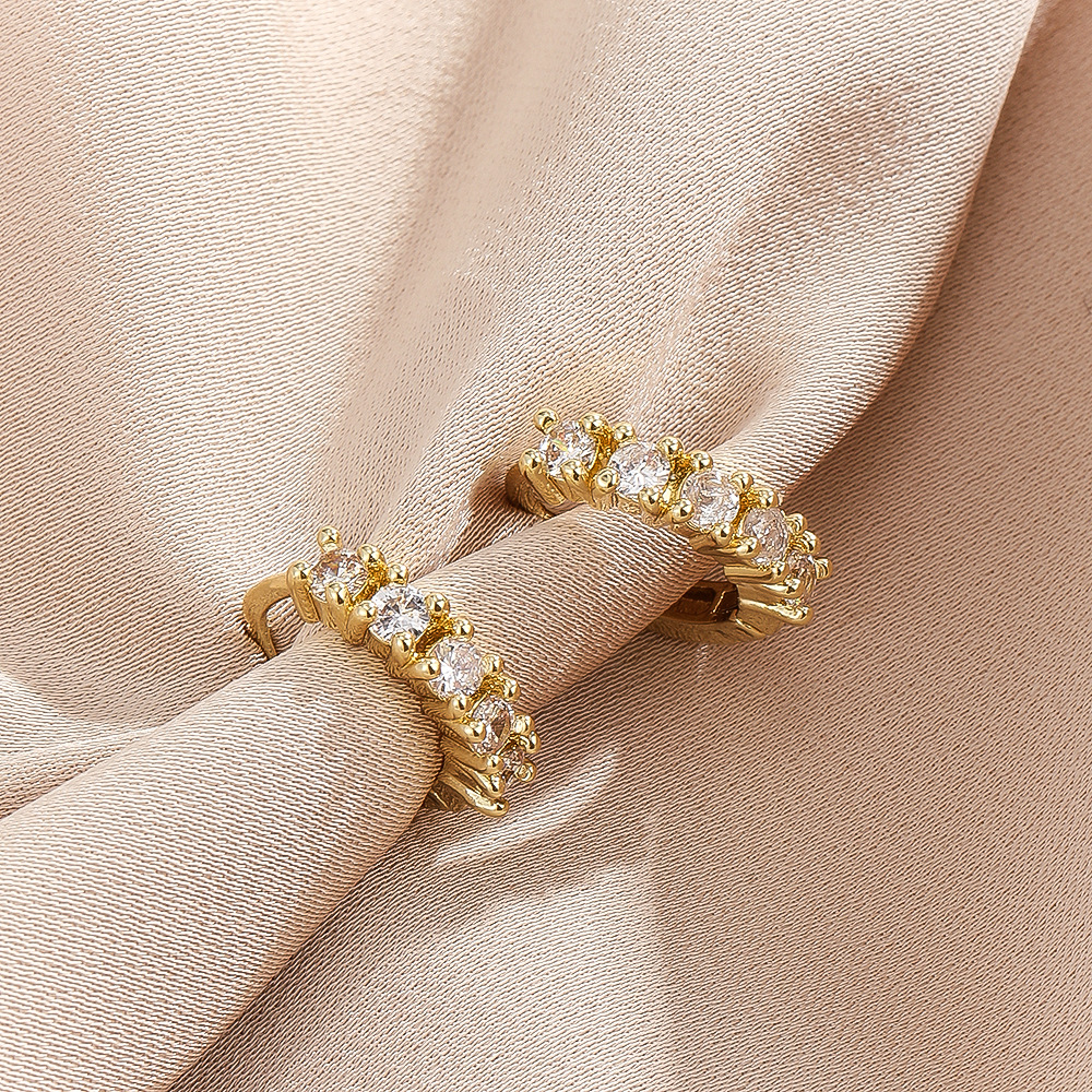欧米のins風の女性の銅の材質は少しカラーのオーストリアのジルコンのイヤリングの女性の耳をはめて耳を挟みます。