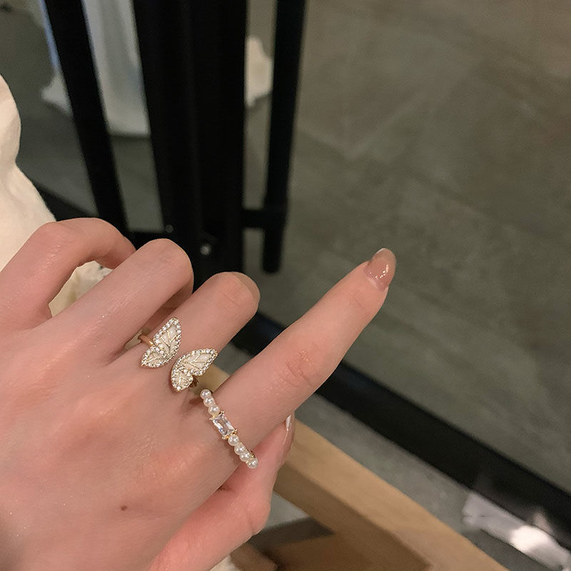 仙気いっぱいの透かし彫りの蝶のカップルの指輪の軽い豪華な大衆の高級な設計感の2023年の新型の潮女の秋冬