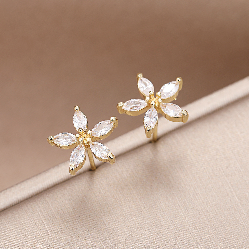 ジルコン金色五弁花ピアス