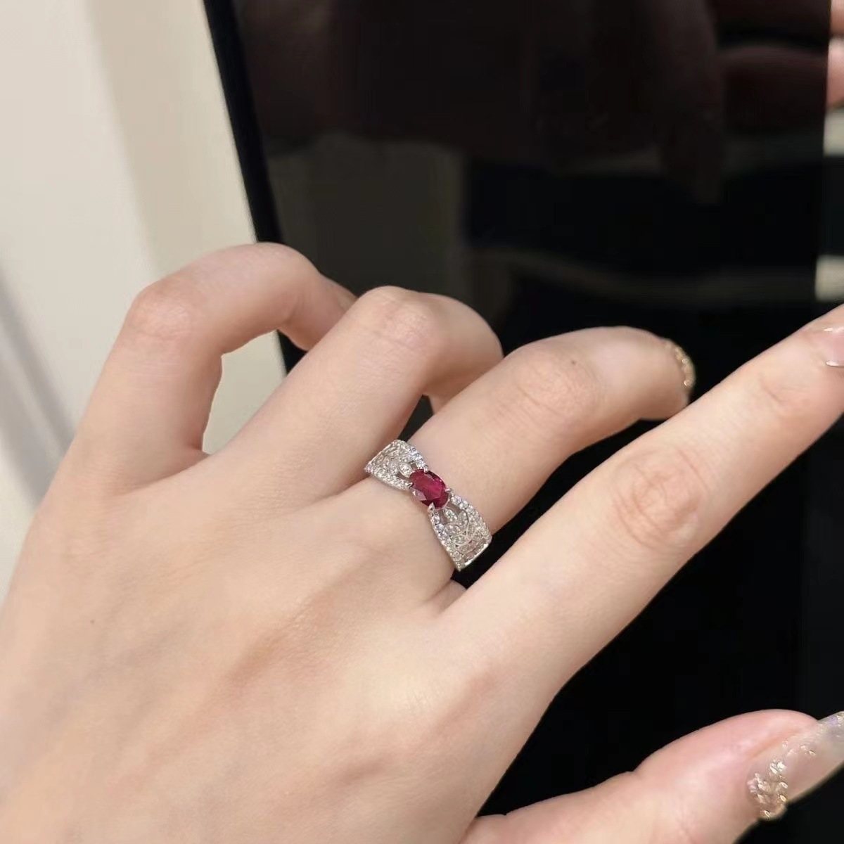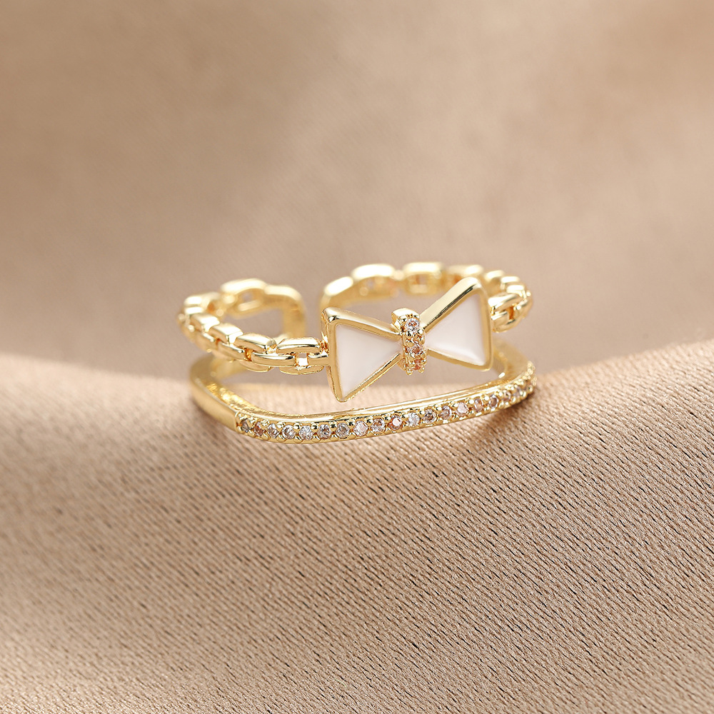 韓国風の透かし彫り二重蝶結びの指輪