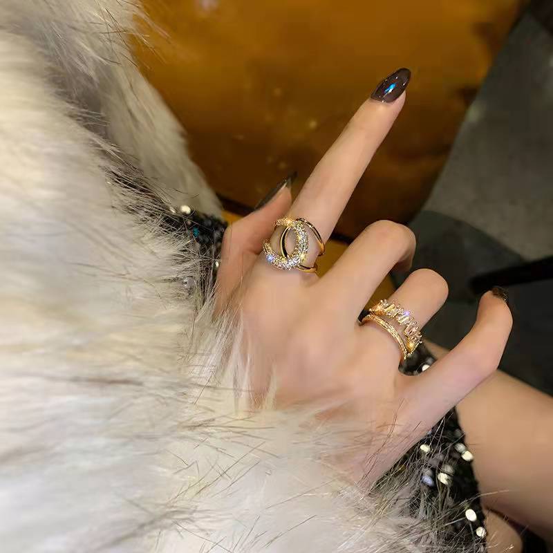 超精緻ins高級不規則ジルコン開口指輪ネット赤爆金insは色が落ちない