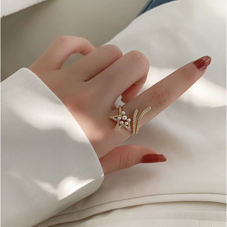 ファッションの個性的な星の真珠の開口部の人差し指の指輪の女性insの潮の軽い豪華な大衆の設計の指輪の祝日の贈り物