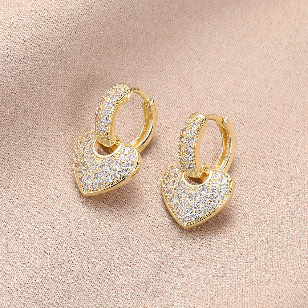 日韓のファッションの気質の優雅な小さい女の人はジルコンをいっぱいにして、桃の心のピアスのイヤリングのイヤリングのイヤリングのアクセサリーの女性を飾ります。