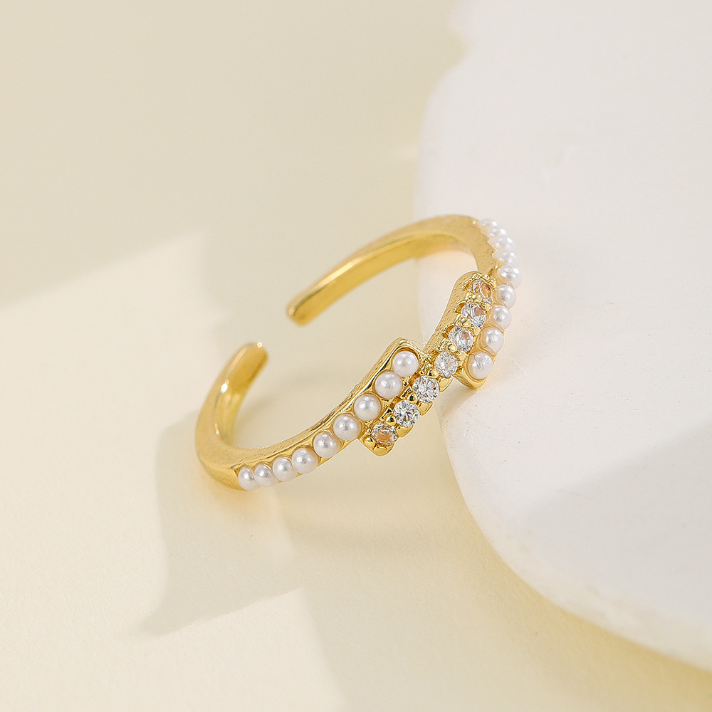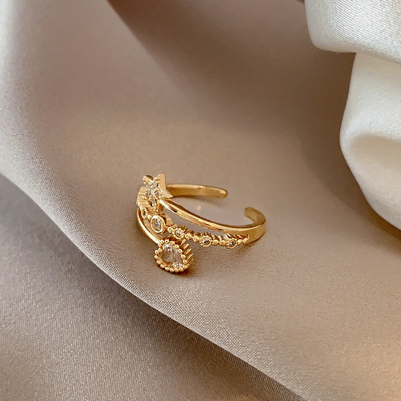 クロスボーダーの新型個性星月真珠の銅の指輪の女性の軽豪華な大衆は冷たい風の指のリングの人差し指の指輪を設計します。