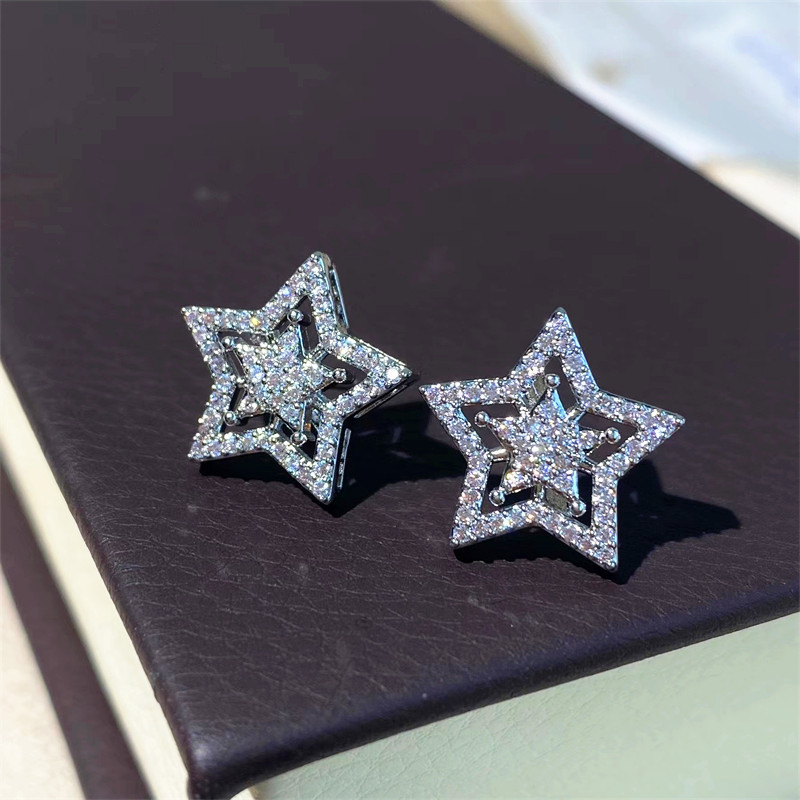 2024新型ファッション国境を越えて人気のある豪華な透かし星銅にジルコンを入れた女性のイヤリング