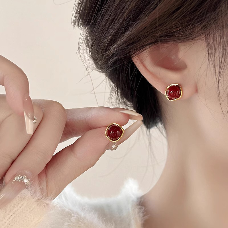 アカシアの赤豆のピアスの新型2024の爆発金の秋冬は新年のイヤリングの高級感の小さい衆の赤い耳飾りに適します。