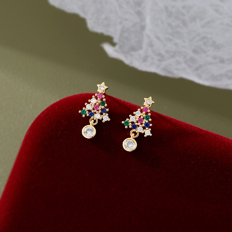 クリスマスツリーのピアスの女性は秋冬に小さくて精巧で、カラーのジルコンのイヤリングの大衆のデザイン感があります。