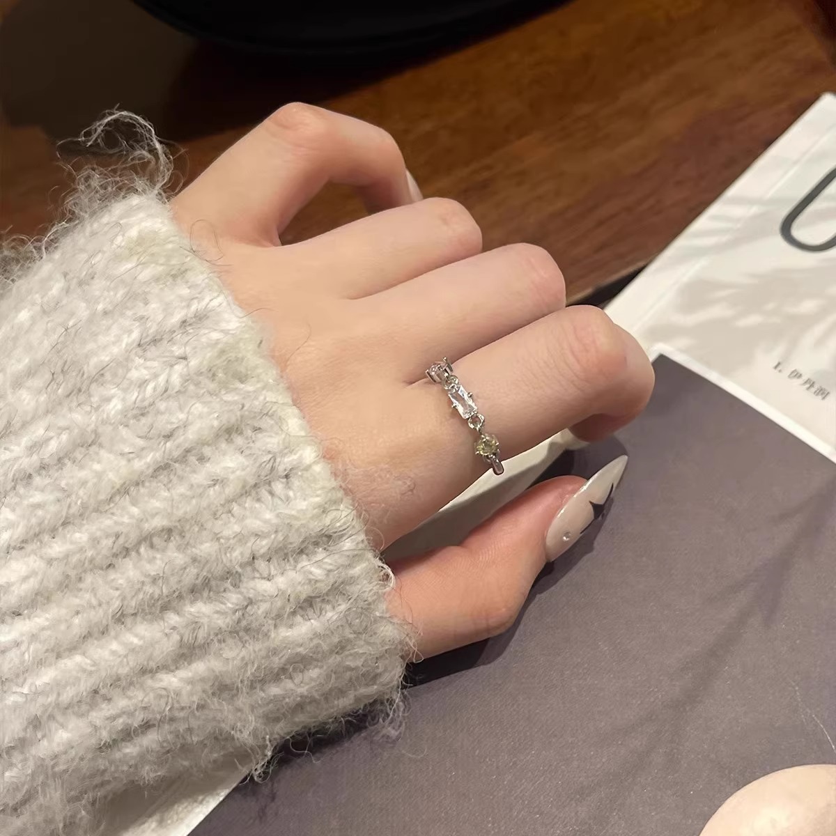 クロスボーダーの新しいレトロスタイルのファッショナブルな銅ジルコンリング、色あせしない女性用、ハイエンドデザイン、多用途のオープンリング