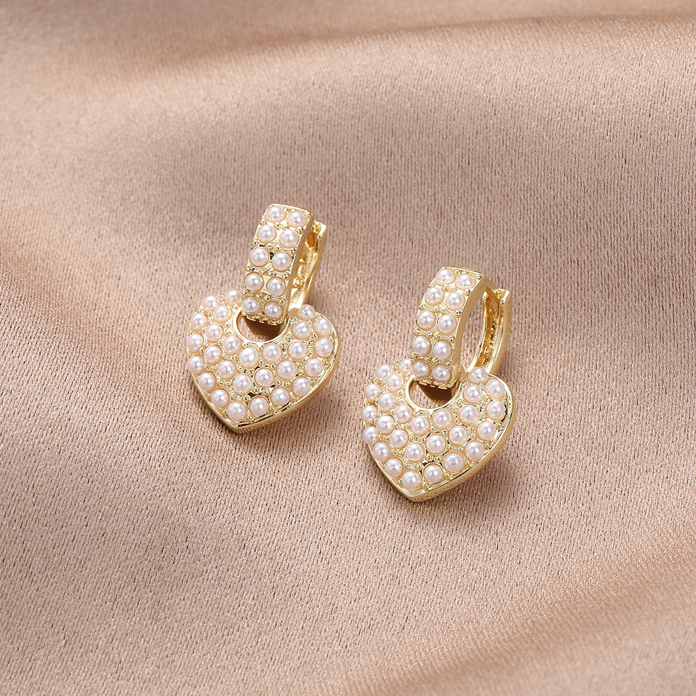 愛の真珠のイヤリングの女性のファッションの精巧な気質の高級な軽豪華な越境のハート型の耳飾りの桃の心のイヤリング