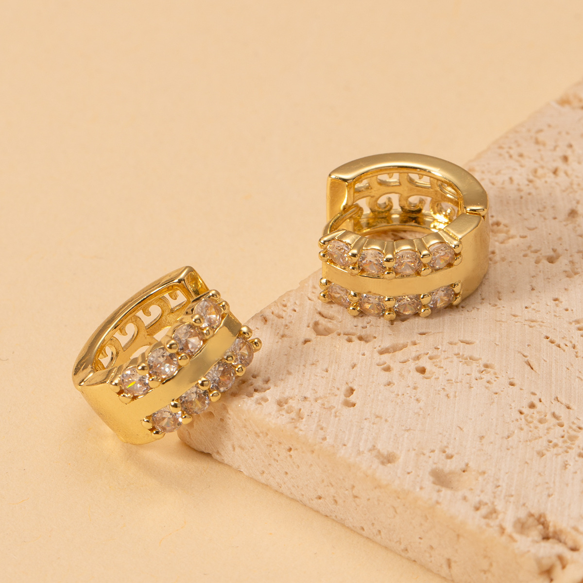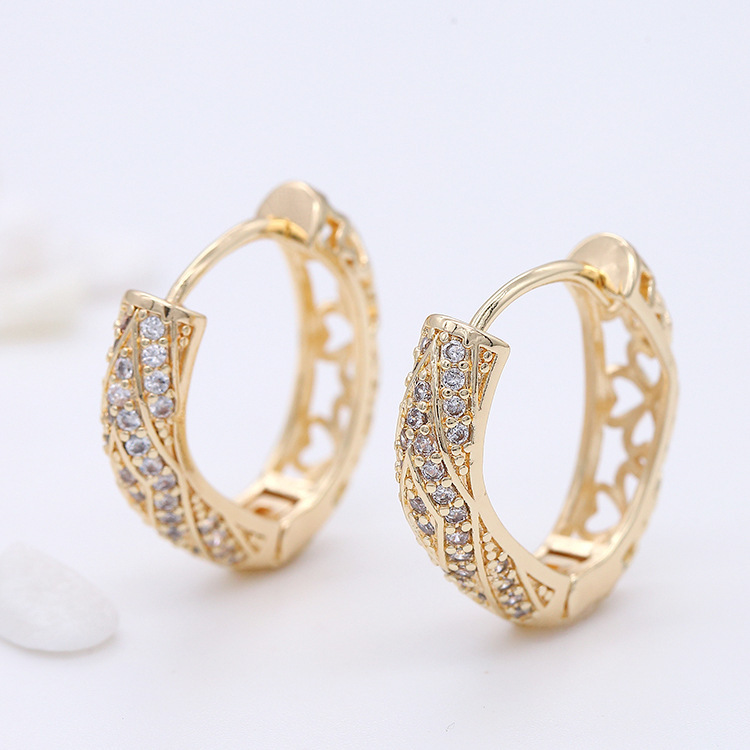 【銅の小さいジルコン】欧米の透かし彫りのストライプの耳輪の気質は軽くて豪華で小さい大衆のデザイン感があります。