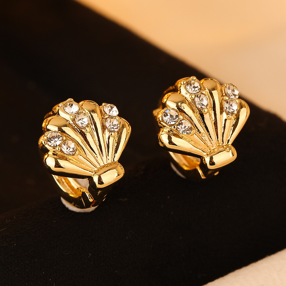 欧米の越境して新型の軽豪華なイヤリングの女性のジルコンはドリルの貝殻の耳の輪の耳のボタンの高級感の耳のアクセサリーの卸売りを入れます。