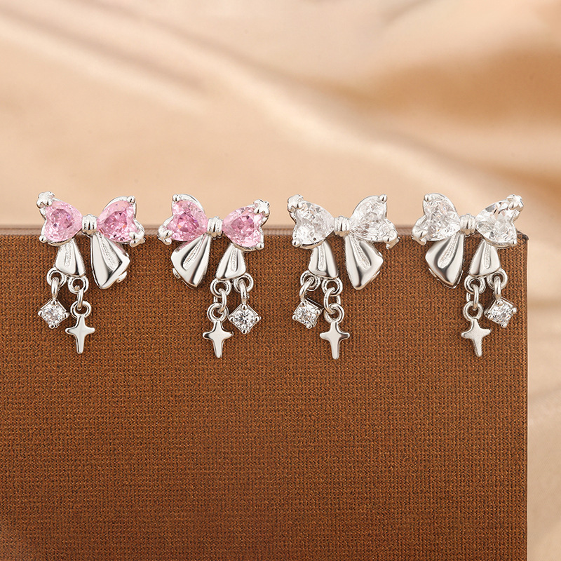 星のきらきらと輝く蝶結びのジルコンのピアスの女性の大衆のデザイン感の高級なファッションの気質のイヤリングは少しジルコンを入れます。