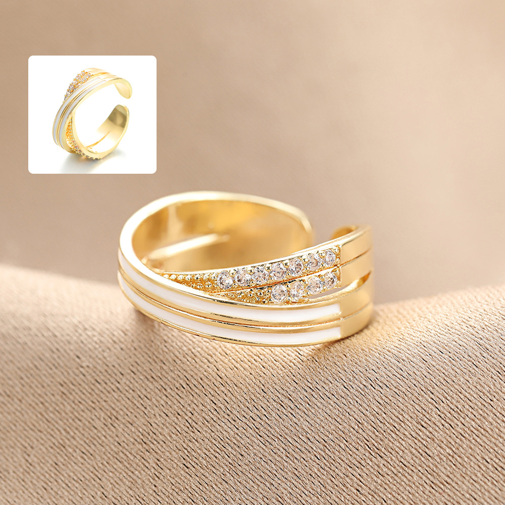 国境を越えたフランスの銅にジルコンの開口指輪を入れた女性の幾何学的な形が交差して冷たい風の個性ins気質の指環