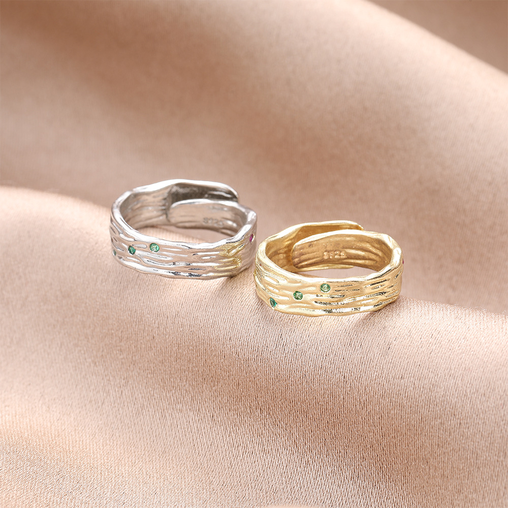 新しいレトロでシンプルな個性的なデザインのジルコンの木の紋様の指輪のアイデアの潮流はダイヤモンドの不規則な木目の指輪を入れます。