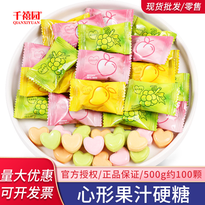 千年園ハート型ジュース硬糖ばら積混合味キャンディーネット赤爆金高颜値間食喜糖卸売り