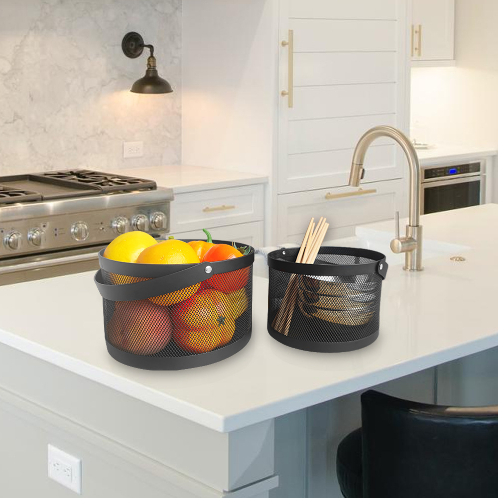 鉄芸厨房雑物物置かご果物野菜金属水切りかご間食収納かご円形手提げ果物かご
