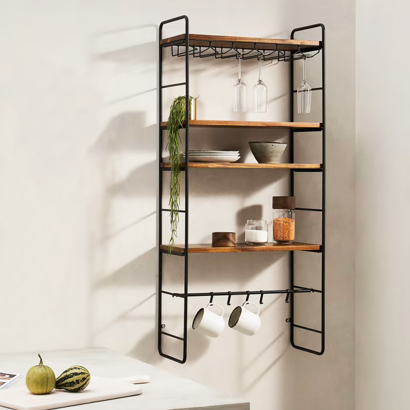 壁掛け収納棚キッチン棚四段金属棚棚棚棚家庭装飾カップ棚付きマークフック
