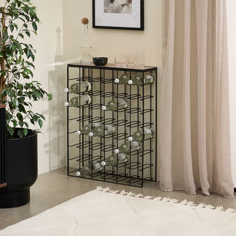現代のシンプルなスチールブラック48本の独立した金属鉄芸ワイン洋酒棚バー