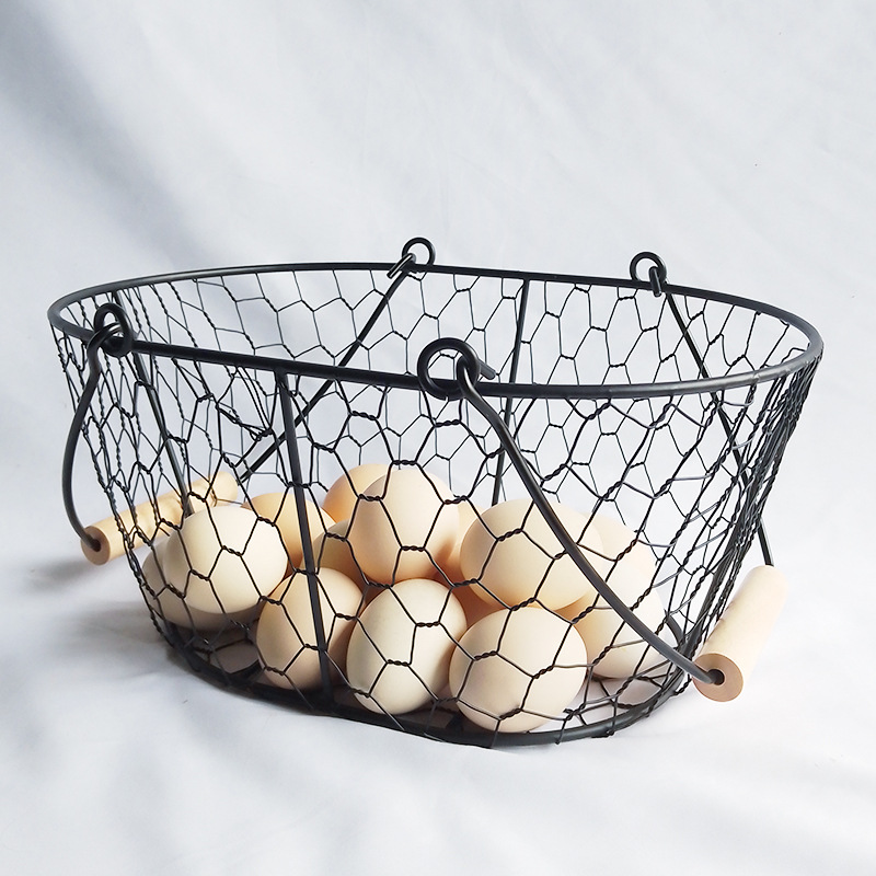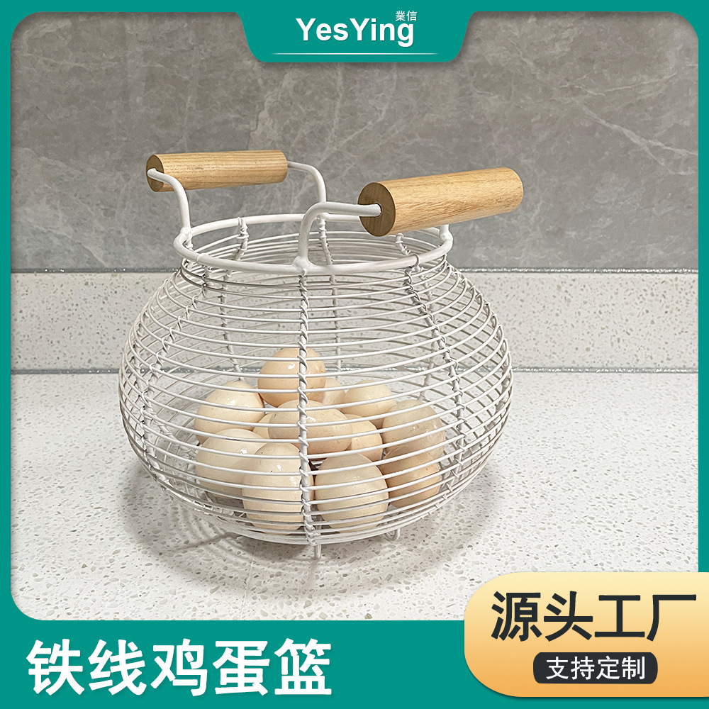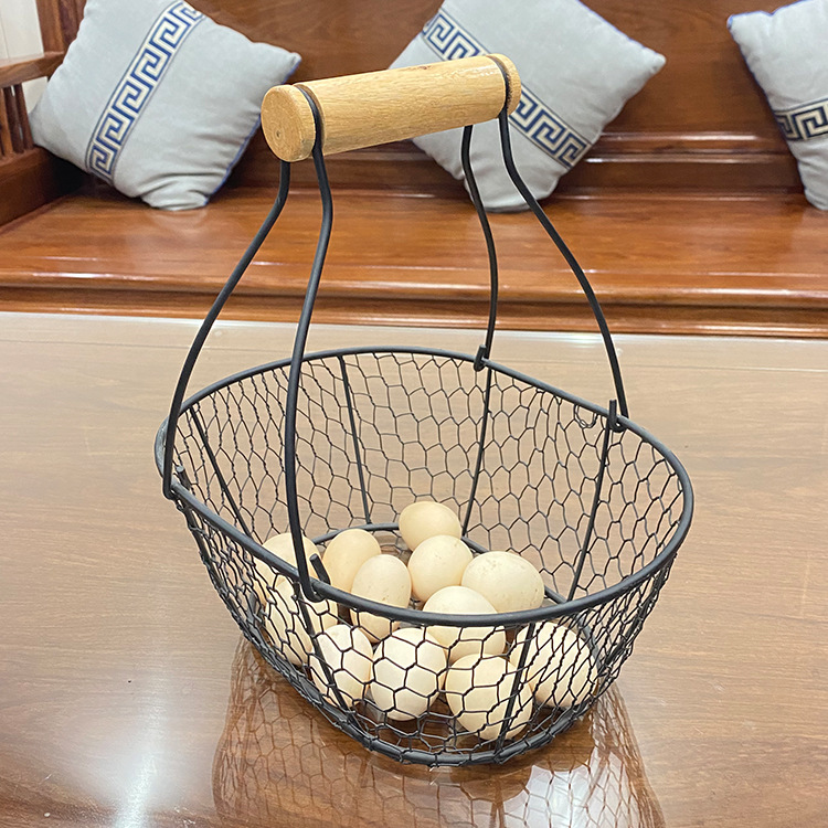 卵かご木柄手提げかご卵果物野菜雑物収納かごキッチン鉄芸円形収納かご