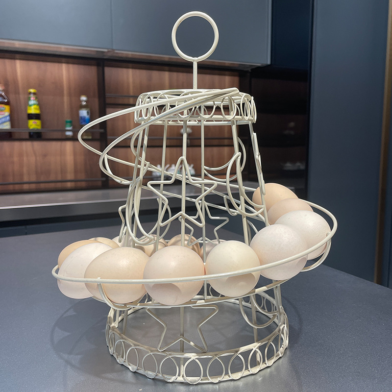 台所の創意的な螺旋式の卵の棚は星の月の図案の装飾の卵を持ってかごの卵の収納棚を持ちます。