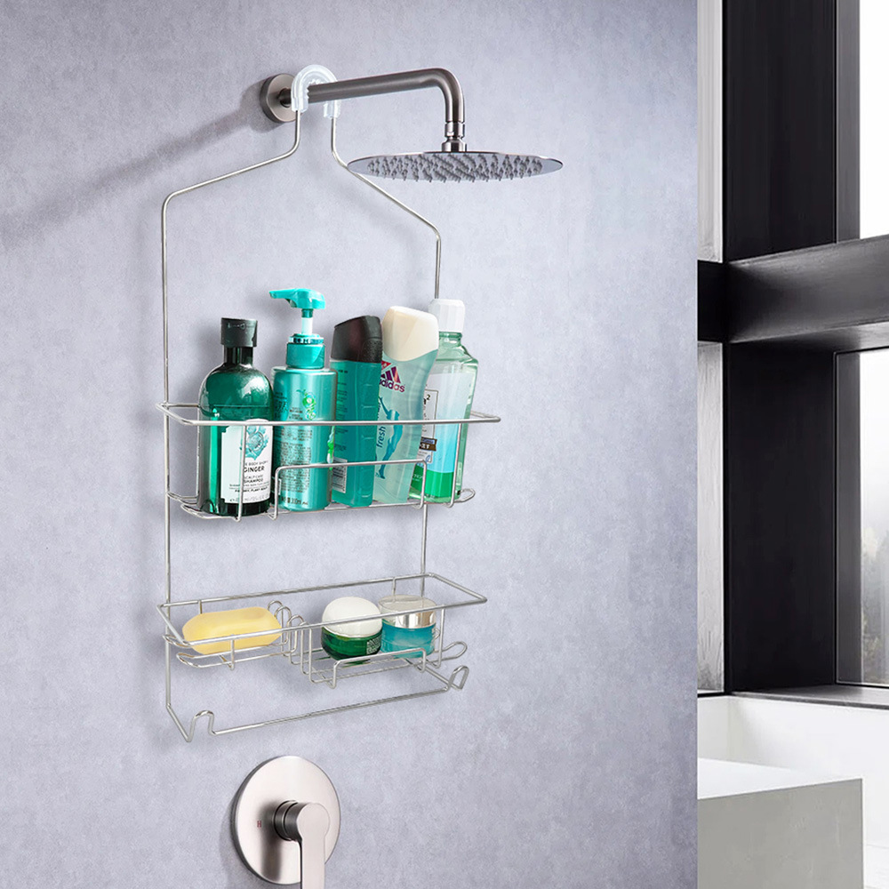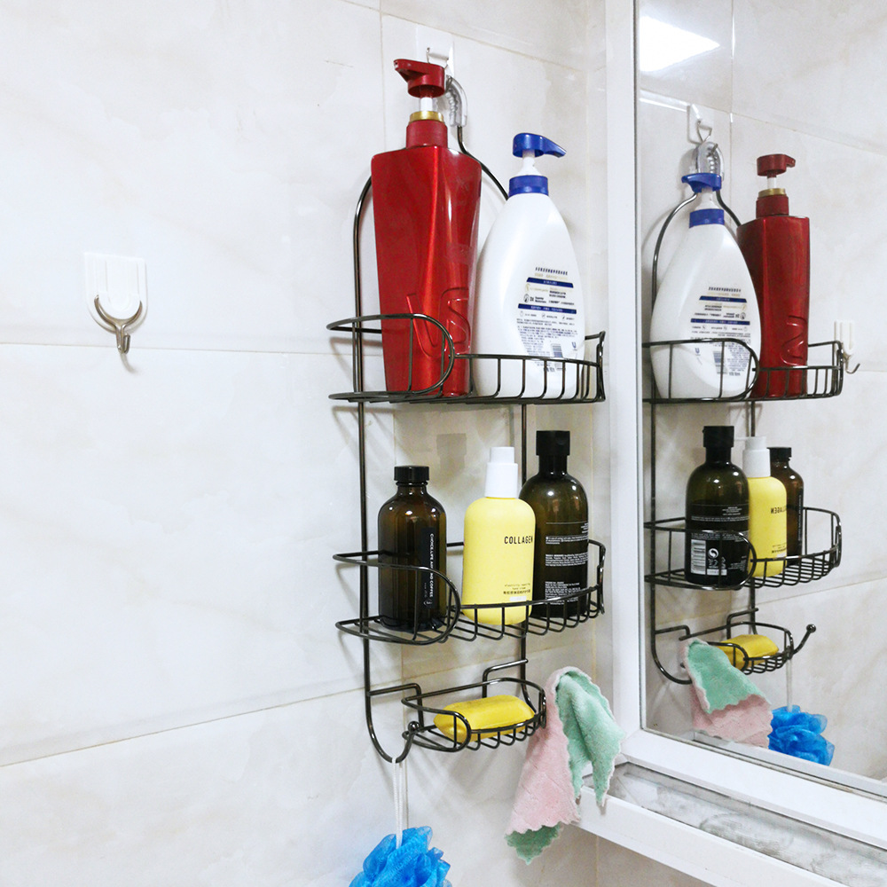 ステンレス穴なし浴室洗浄用品収納棚トイレフック式シャワーヘッド収納棚