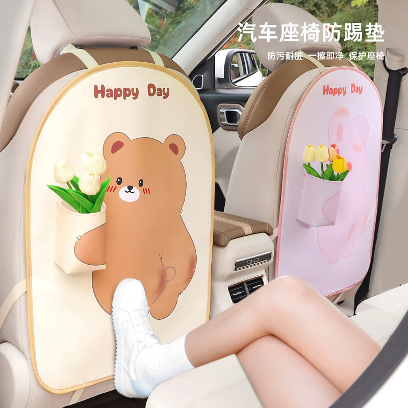 車のキック防止パッド革かわいい漫画子供の後部座席収納汚れ防止耐摩耗性車載後部座席保護カバー