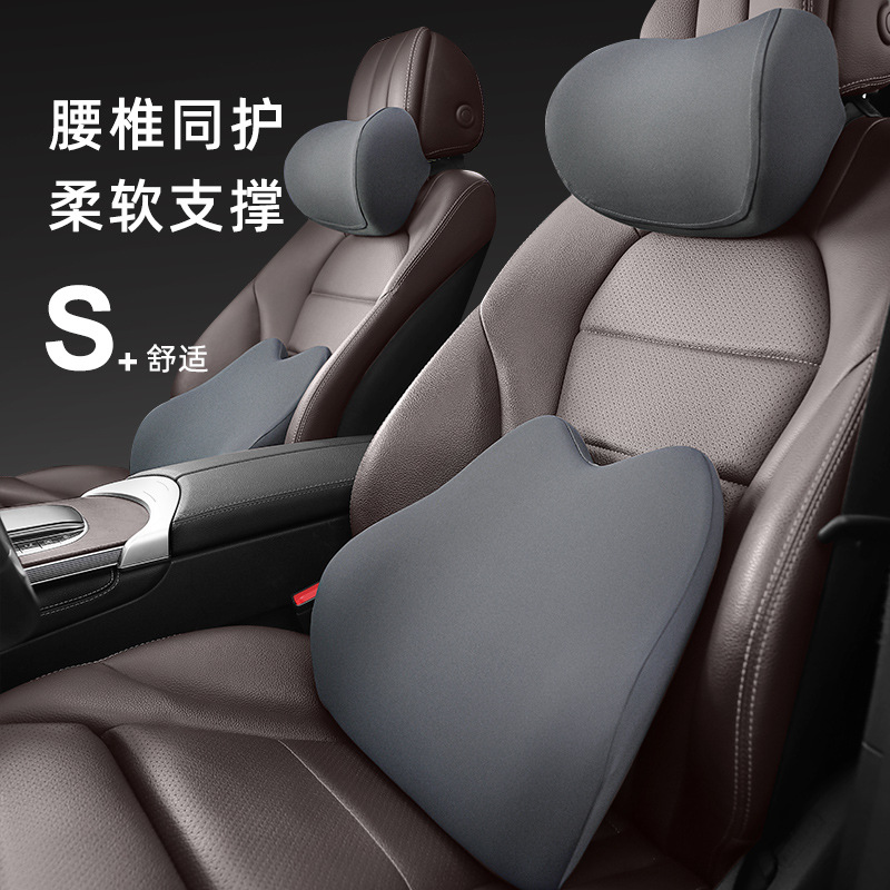車のヘッドレスト腰保護首枕記憶綿四季通用純色車載シートクッション腰保護背もたれクッション