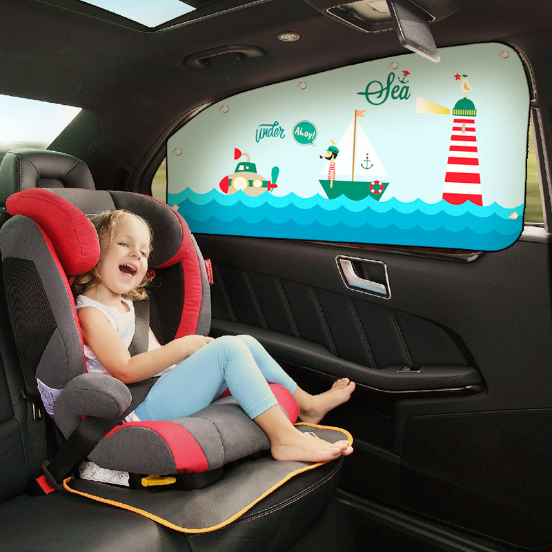 車用カーテン 二重構造 厚手 漫画柄 日よけ 断熱 遮光布 車内プライバシー サイドウィンドウ 車載吸盤式サンシェード