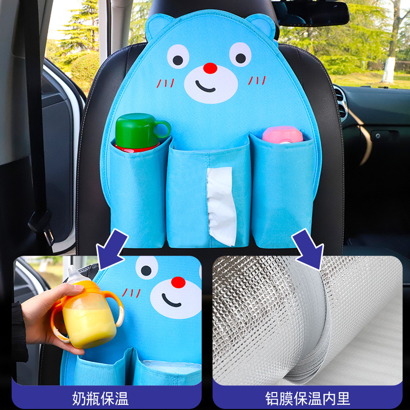 漫画の車の椅子の背もたれの袋のかわいい立体動物の多機能の椅子の背もたれの子供のコップの哺乳瓶の棚の収納袋