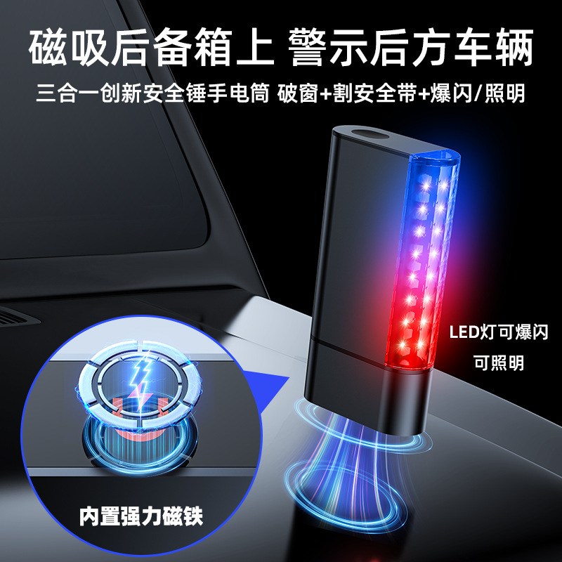 警告灯付き車載安全ハンマー、緊急照明、救助用カッター、車用脱出懐中電灯、窓割り器、越境販売
