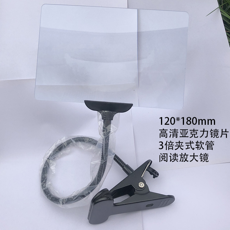 高精細アクリルレンズ3倍長方型120x180mmクリップ式金属ホース老人読書ルーペ
